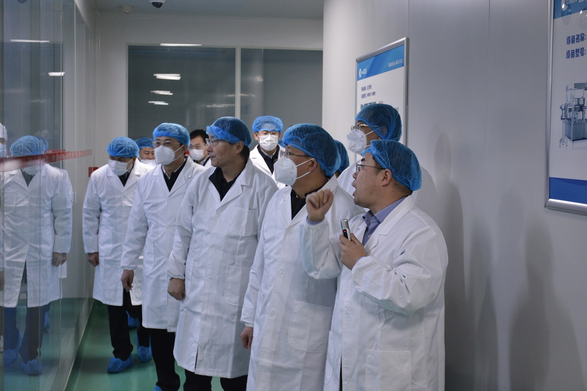 夏紅民書記一行先后到藥物研究院、公司展廳、藥品生產車間,深入了解企業發展規劃、產品研發、技術創新、生產經營等情況。