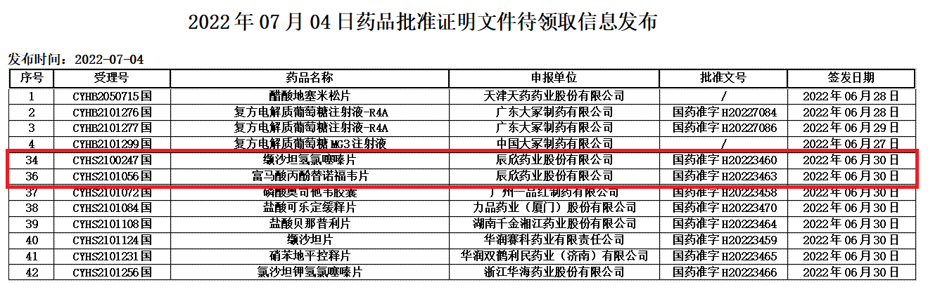 辰欣藥業(yè)兩產(chǎn)品同日獲批